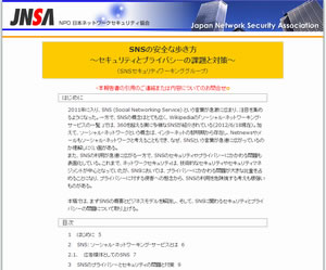 NPO日本ネットワークセキュリティ協会が「SNSの安全な歩き方」をPDFで公開。参考になる情報ですが、初心者の方には少し難しいかもしれません。