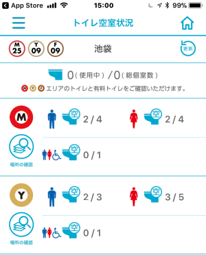 東京メトロより「トイレ空室状況提供サービス」実証実験の告知がありました。スマホのアプリで池袋駅のトイレ空き室状況が確認できるとのこと。