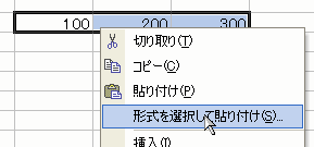 ・ 入れ替えた表を貼り付ける基点となるセルを右クリックして