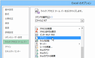 - 「OK」ボタンを押すと「クイックアクセスツールバー」に「オプション」が追加されます。