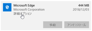 「修復」と「リセット」は 2017年の秋に適用された「Windows 10 Fall Creators Update」から追加された Edge のオプション機能です。