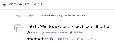 この拡張機能なら「タブを新しいウィンドウに移動」する方法として