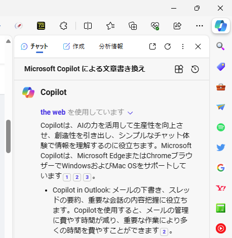 Edge で文章を編集中に「Copilot で書き換える」というメニューが表示されましたが、これで何ができますか?