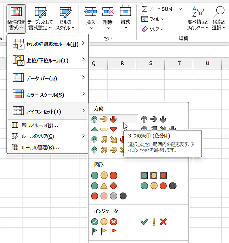※「アイコンセット」の用語解説 - アイコンスタイル「3つの矢印(色分け)」