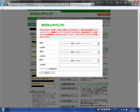 不正にポップアップ画面を表示させてゆうちょダイレクトの情報を